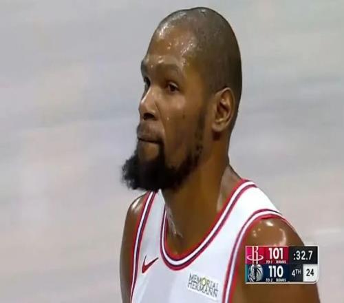 杜兰特看着头顶大屏幕的比分,无言
